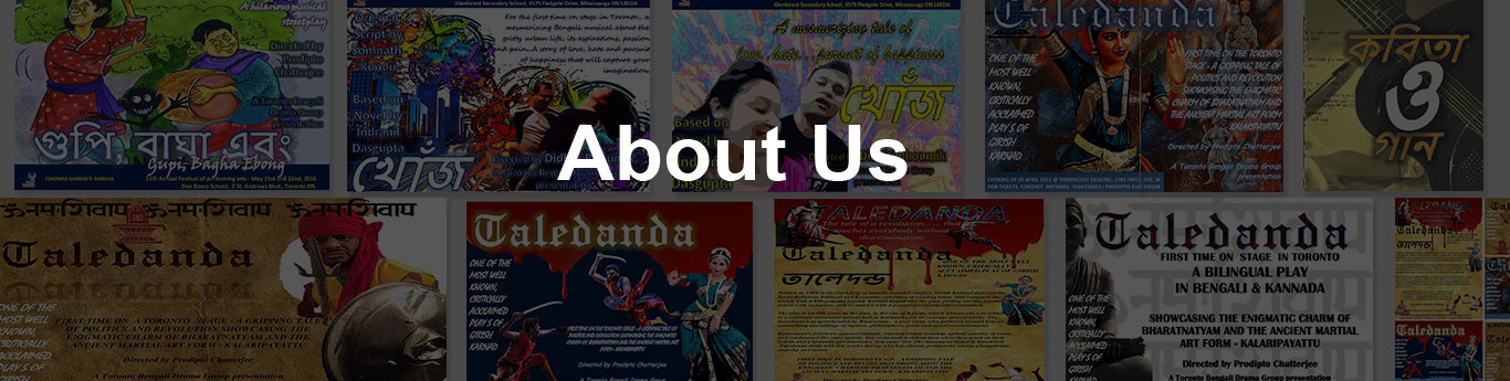 Yorkwoods Library Theater has been primary venue for these plays since 1979 and an April program at this location has become an annual event that people look forward to. Several famous plays were enacted here, including "Shah Jahan" and "Cham Cham Kumar" in 2002 and 2013 respectively, "Jome Manushe" (Yama/God of Death vs. Man) in 2003, "Rajar Oshukh" (King's malaise) in 2007, "Shubarno Onguli" (Golden Fingers) in 2011, "Macchi" (The Fly) in 2012, and Girish Karnad’s period play “Taledanda” in 2015. The Group marked the debut of the musical genre through the original production of "Kichhuta Shure Kichhuta Dure" (With A Little Melody, At A Little Distance), at the 2013 Toronto NABC Meet. This was closely followed by “Gupi, Bagha ebong”(2016), a musical street play with actors singing live songs supported by a band on stage and by “Miss You Kolkata”(2017), a live band with drama enactments that was staged at multiple events by other cultural organisations around GTA.